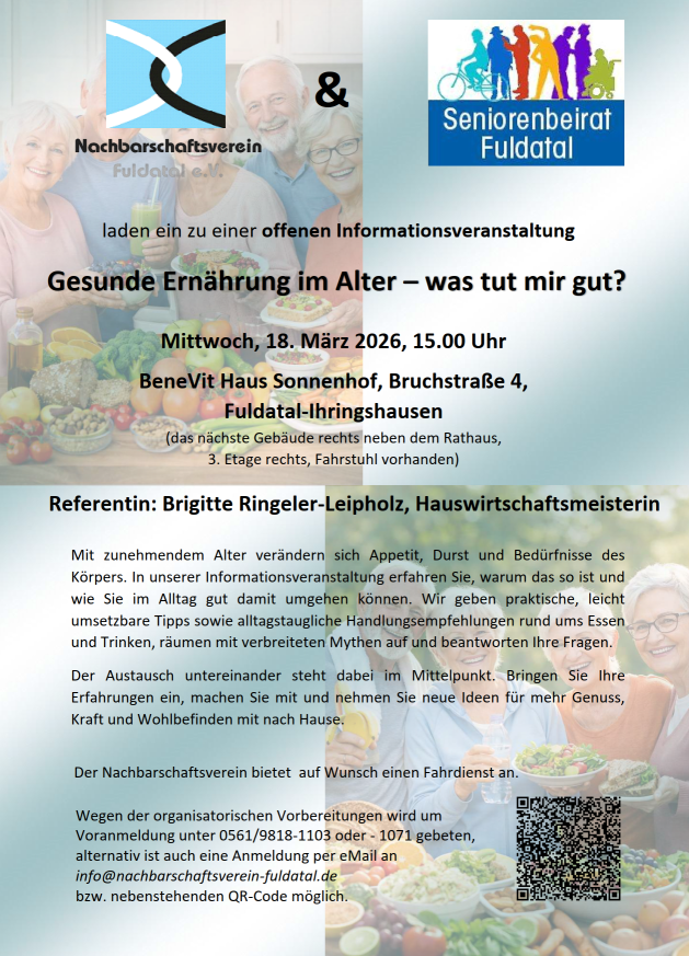 Auf Einladung des Seniorenbeirats und des Nachbarschaftsvereins Fuldatal hatten interessierte Bürgerinnen und Bürger in der vorletzten Januarwoche die Gelegenheit, sich intensiv mit einem Thema auseinanderzusetzen, das viele Menschen bewegt: dem seelischen Wohlergehen im Alter. Die gut besuchte Informationsveranstaltung bot wertvolle Impulse, praxisnahe Anregungen und Raum für Austausch in angenehmer Atmosphäre.